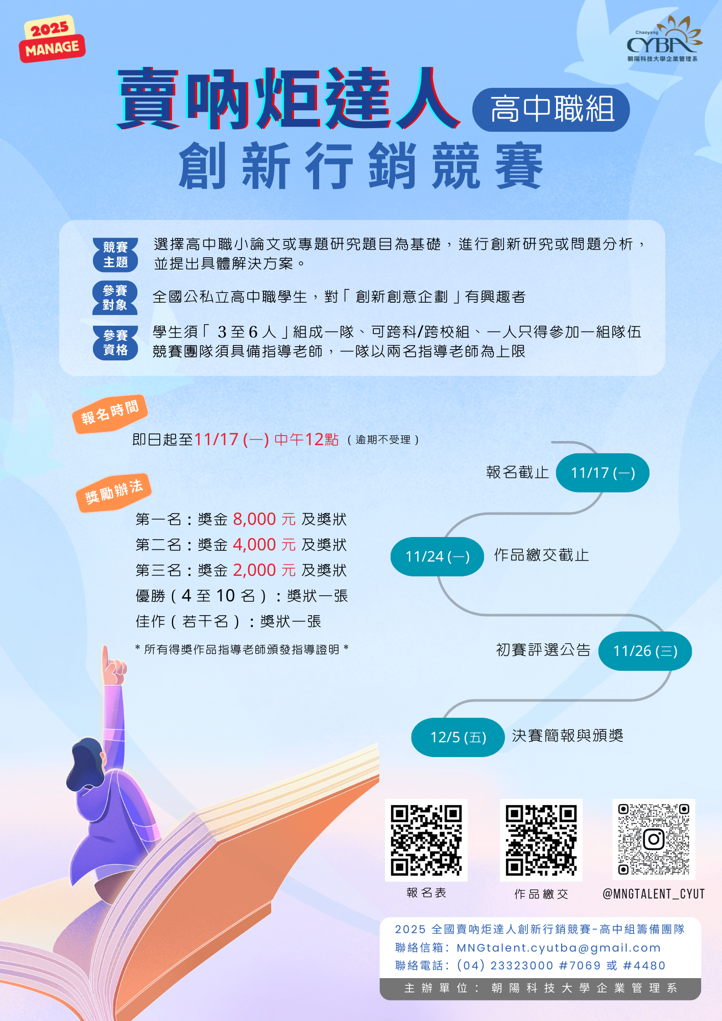 朝陽科技大學企業管理系主辦之「2025全國賣吶炬達人創新行銷競賽-高中職組」比賽辦法(附件1)1份