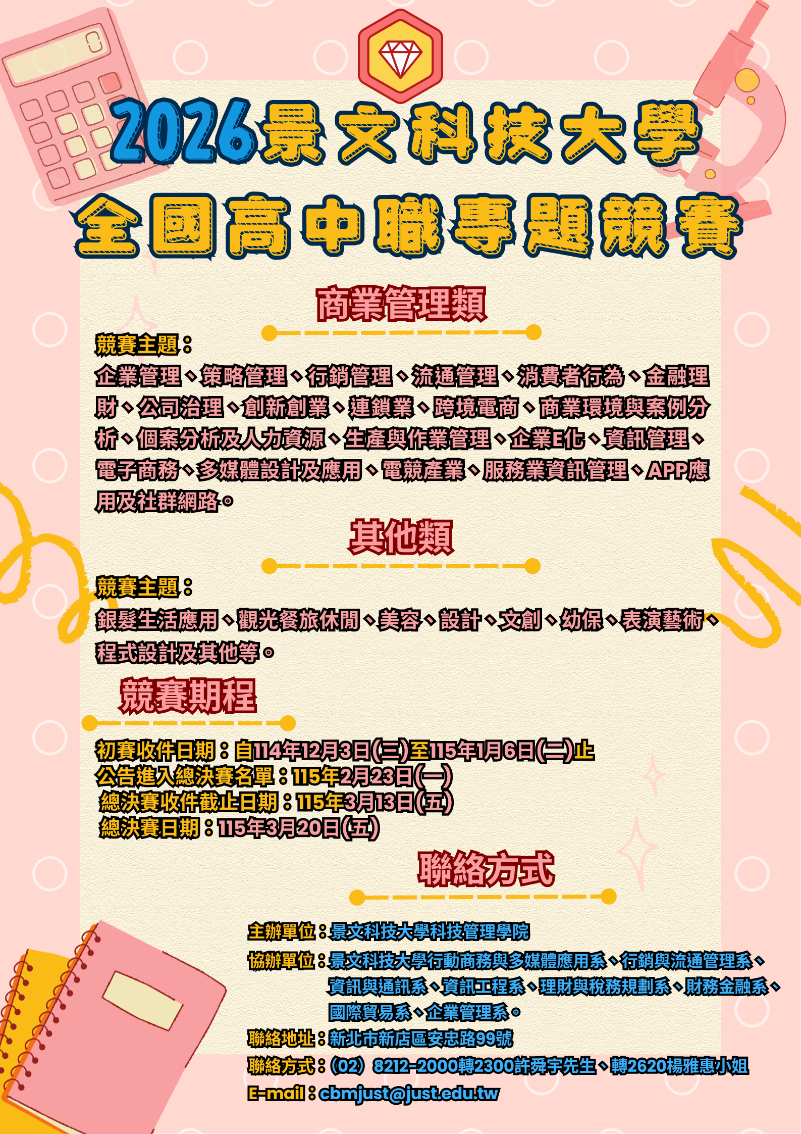 景文科技大學科管學院辦理之「景文科技大學2026全國高中職專題競賽」