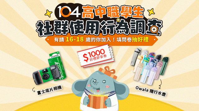 【104人力銀行】邀請高中職生填寫社群使用行為調查問卷,分享想法即有抽獎機會